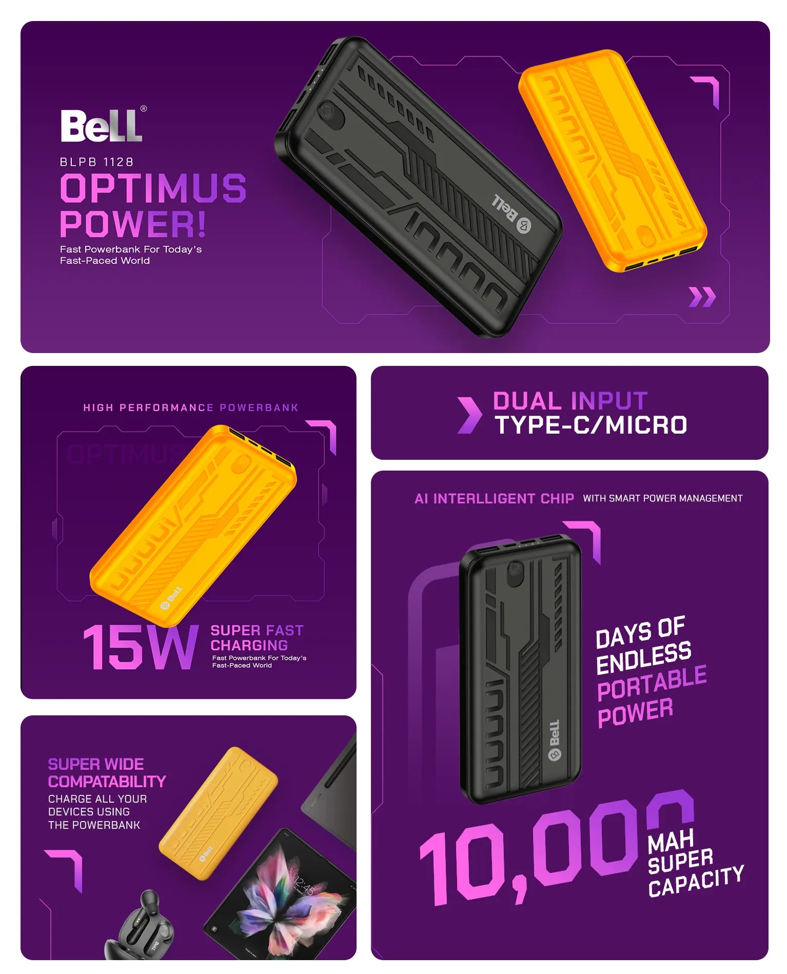 Bell PowerBank Optimus Series 10000mAh Power Bank 15W