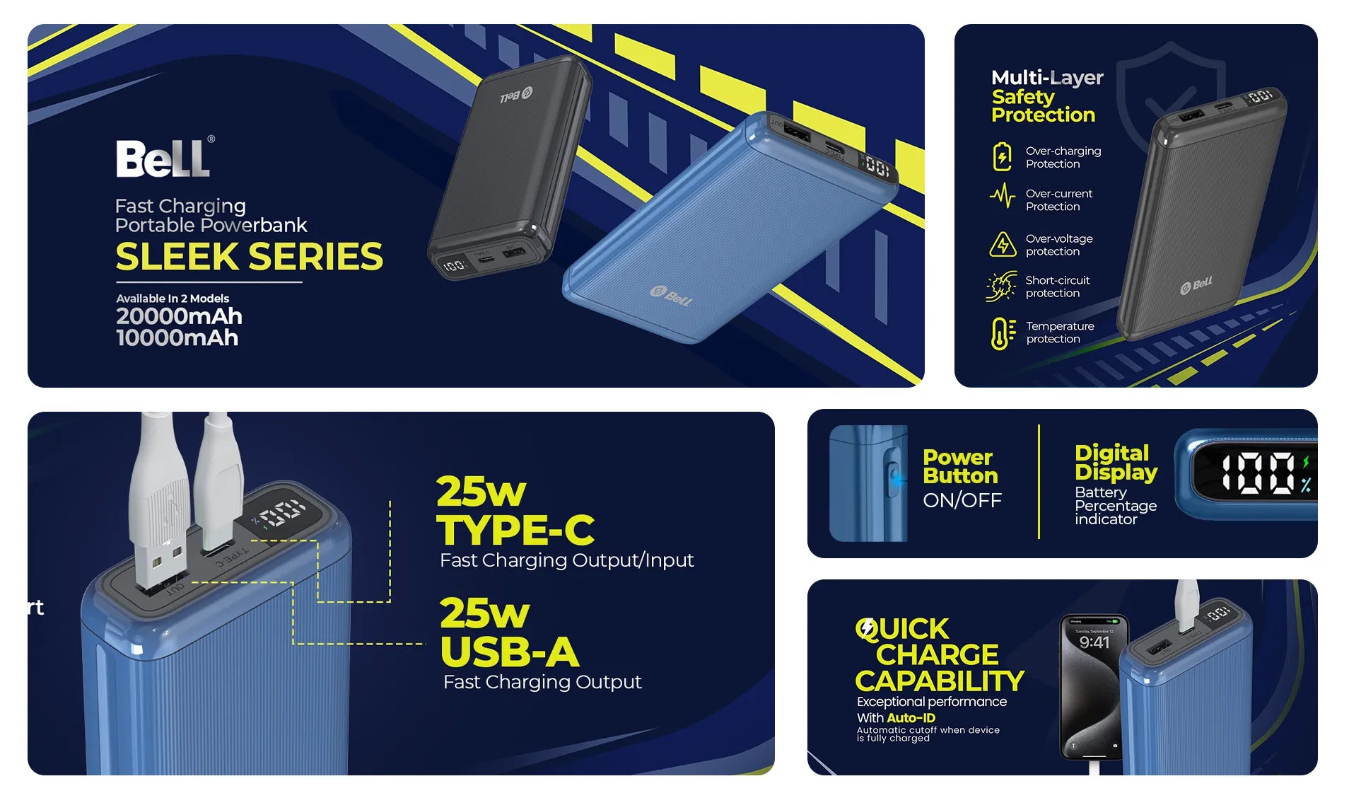 Bell PowerBank SLEEK Series 20000mAh Power Bank 25W