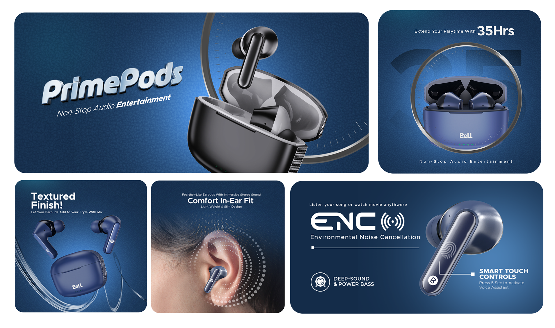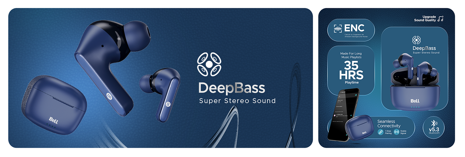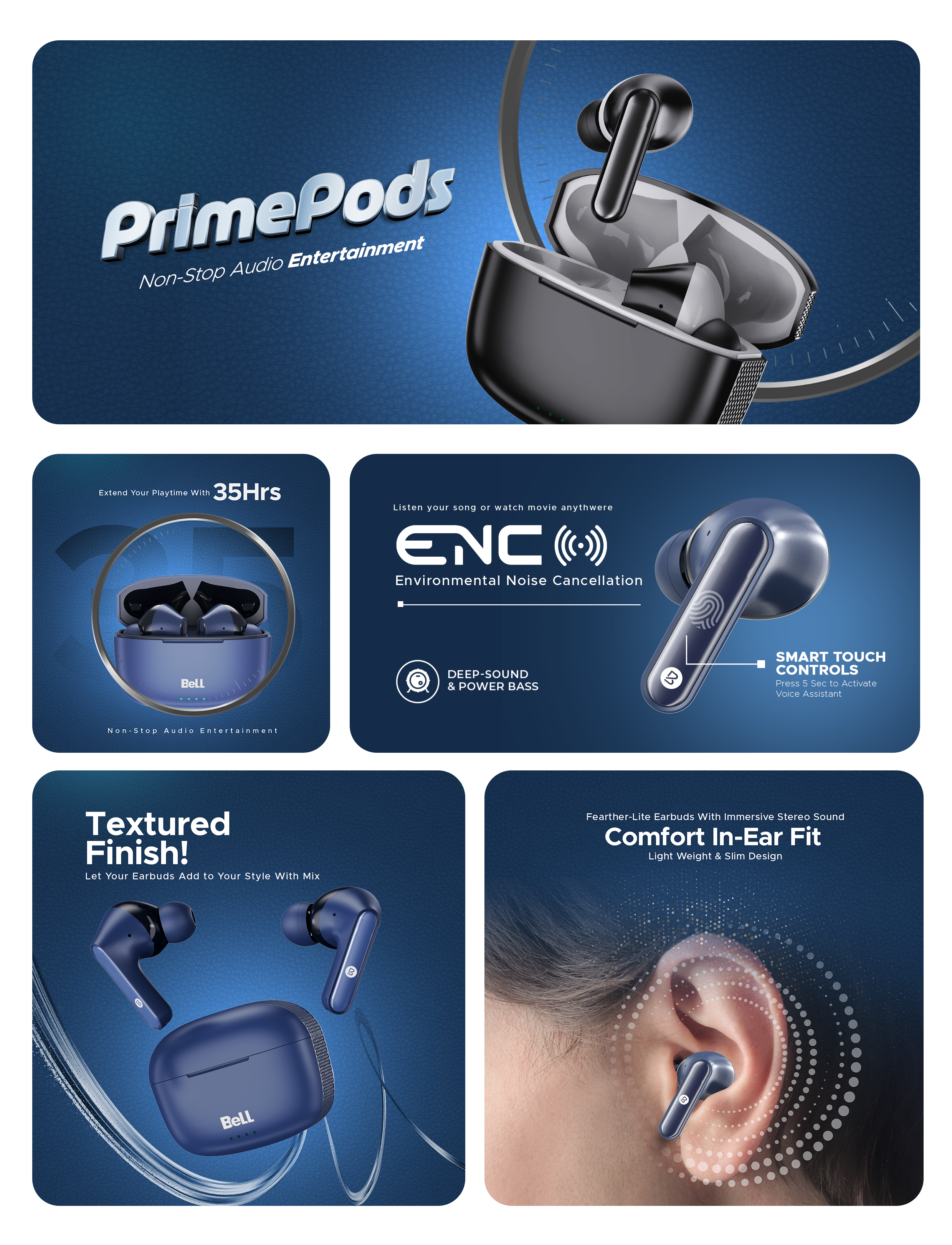 Bell PrimePods Wireless Earbuds | 35Hrs Playtime, ENC Noise Cancellation & Smart Touch Controls