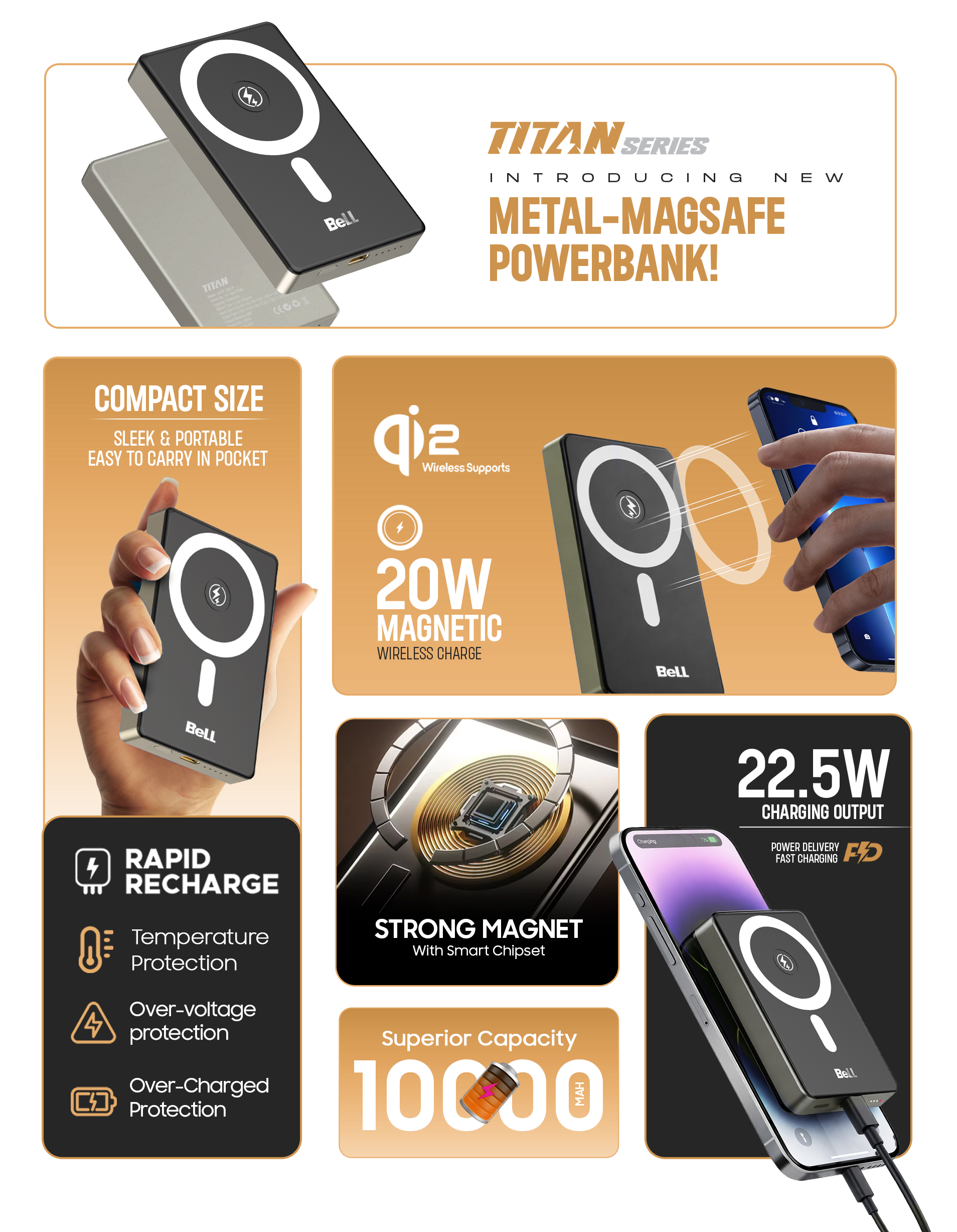 Titan Series 10000mAh Magnetic Wireless Power Bank – 20W Fast Charging, Compact Pocket Size